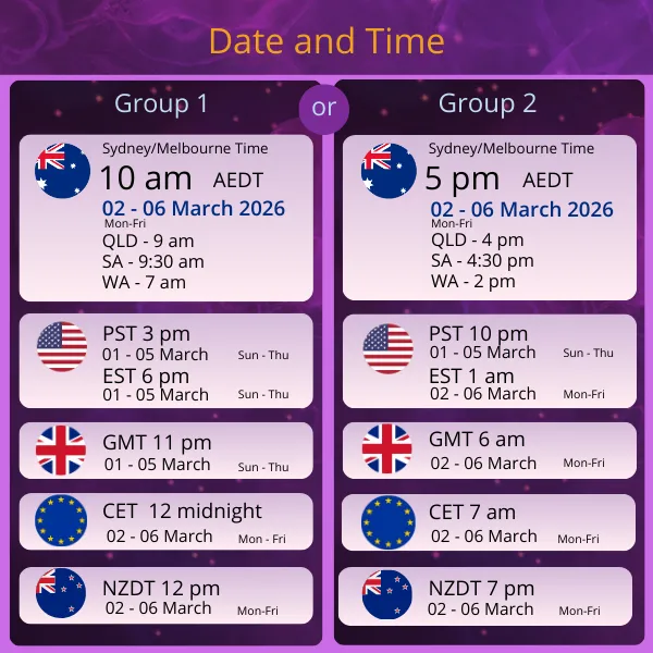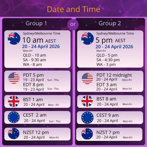 After signing up, you'll receive detailed instruction emails on the next steps, including how to download the workbook and the Zoom link to join the sessions.